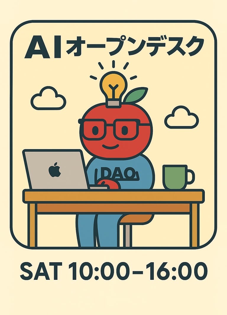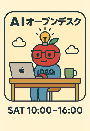 【直近イベントのお知らせ】 8/30(土)・9/6(土)10:00〜16:00 円山公園 ふれあい交流施設 オフィス1にて AIオープンデスク 開催します! AI・スマホ・PCの相談OK、自習スペースとしても利用できます お気軽にどうぞ!